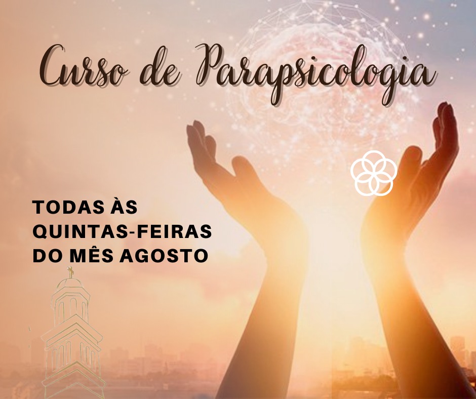 - CURSO DE PARAPSICOLOGIA (WORKSHOP), DAS 18H30 ÀS 20H, SERÃO TODAS AS QUINTAS FEIRAS DE AGOSTO NOS DIAS 05, 12, 19, e 26. CUSTO R$ 15,OO PARA AQUISIÇÃO DA APOSTILA