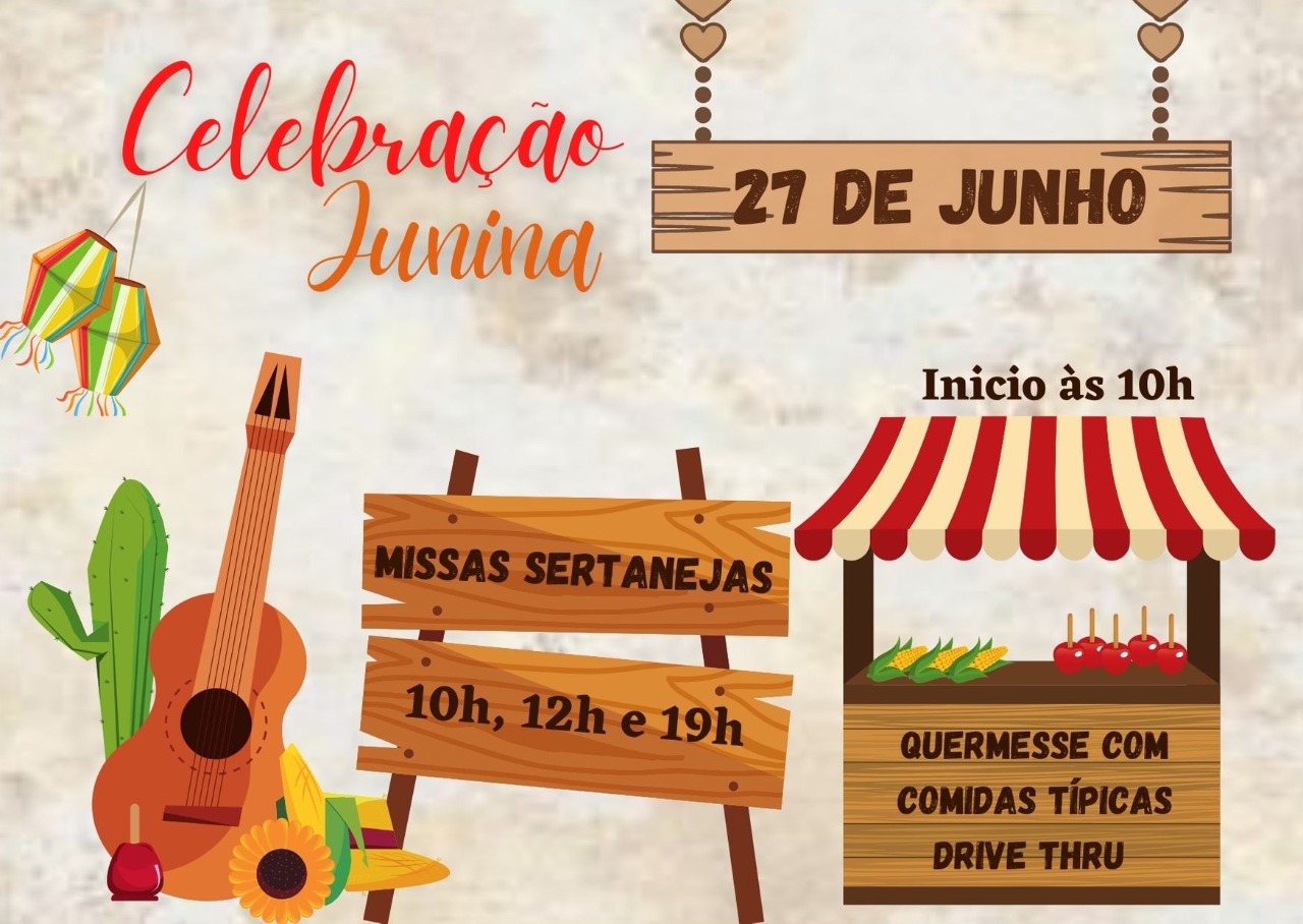 A PARTIR DAS 10H QUERMESSE DRIVE THRU NA PORTA DO SALÃO PAROQUIAL E NA ENTRADA DA CATEQUESE PELA RUA JULIO PERNETA.