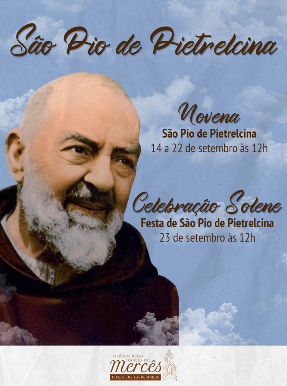 CELEBRAÇÃO SOLENE DA FESTA DE SÃO PIO DE PIETRELCINA DIA 23 DE SETEMBRO ÀS 12H